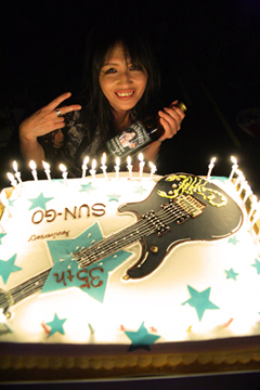祝・35周年サプライズケーキは、蠍ギターとトレードマークである星をモチーフにした心斎橋ピカソさんによるデザインケーキ。ロウソクはもちろん35本だ。